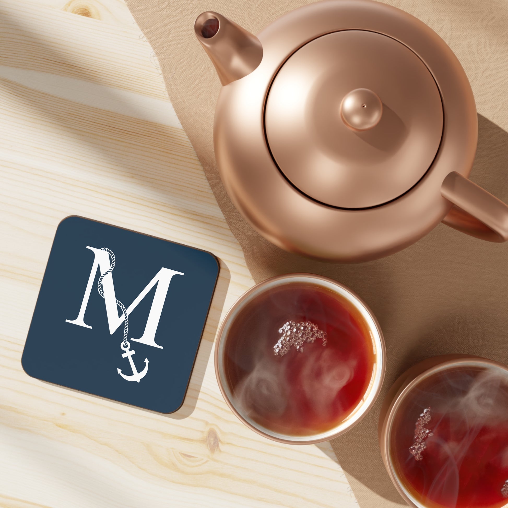 This is a set of 4 high quality nautical coasters personalized with your choice of anchor monograms.