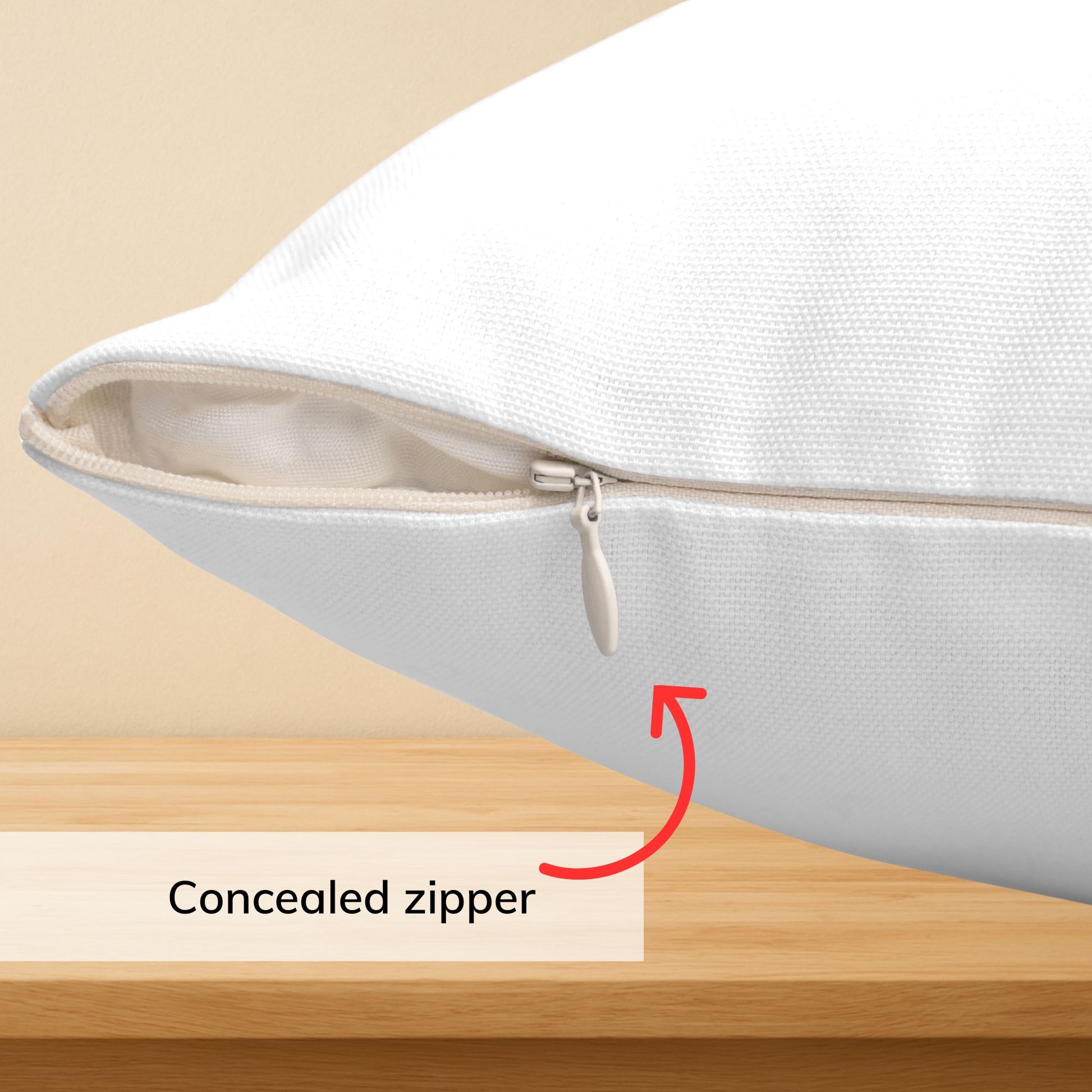 A beige plastic zipper with a metal head adds subtle coastal detail while keeping your pillow easy to remove and clean.
