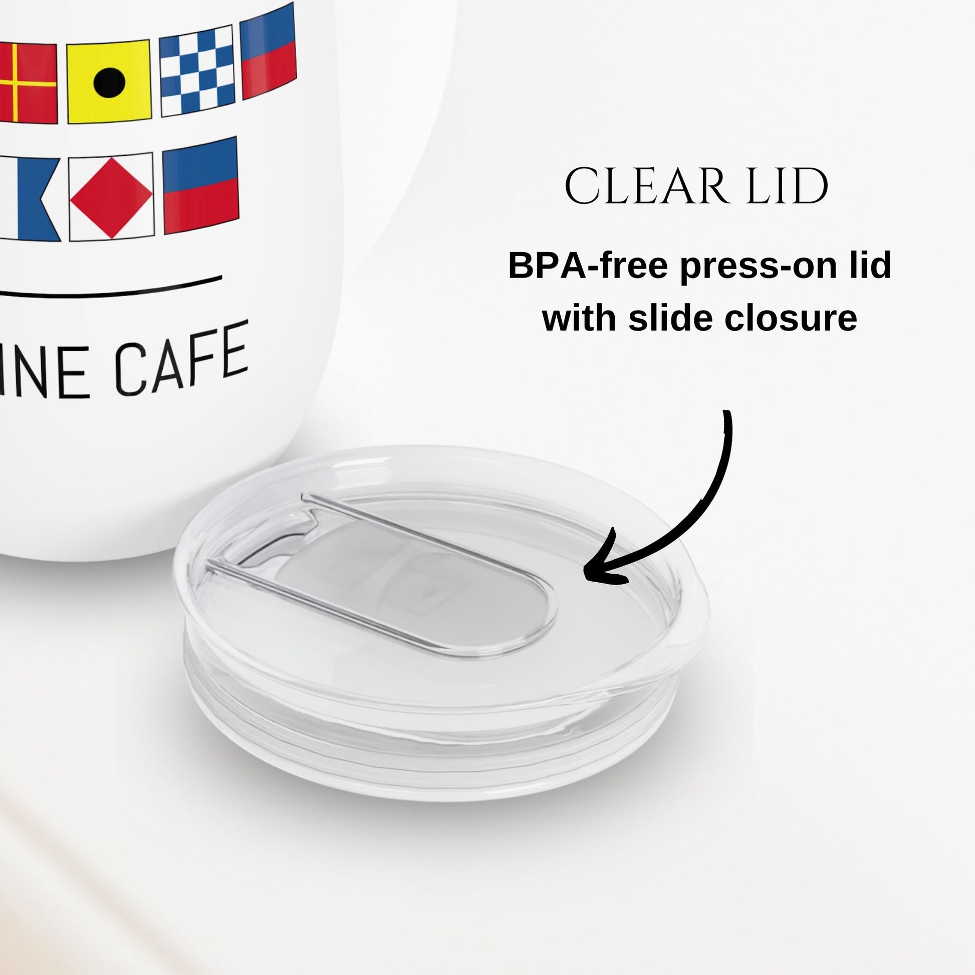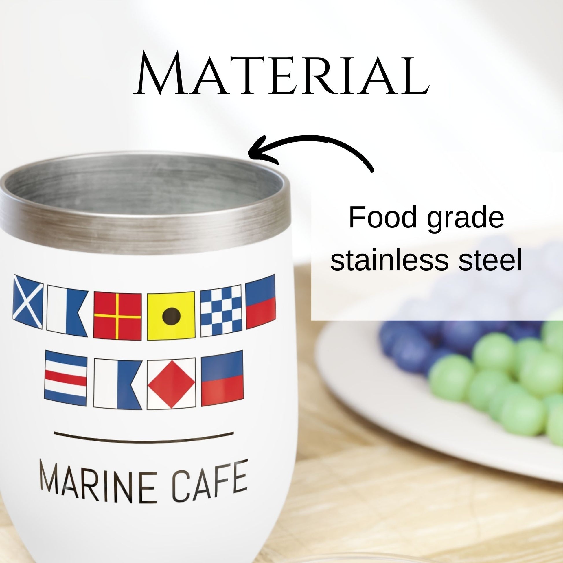 Enjoy your favorite drinks with this personalized nautical flags wine tumbler. The 12oz size is perfect for wine, coffee, tea, or cocktails. Double-wall vacuum insulation keeps drinks hot up to 6 hours and cold up to 12 hours.