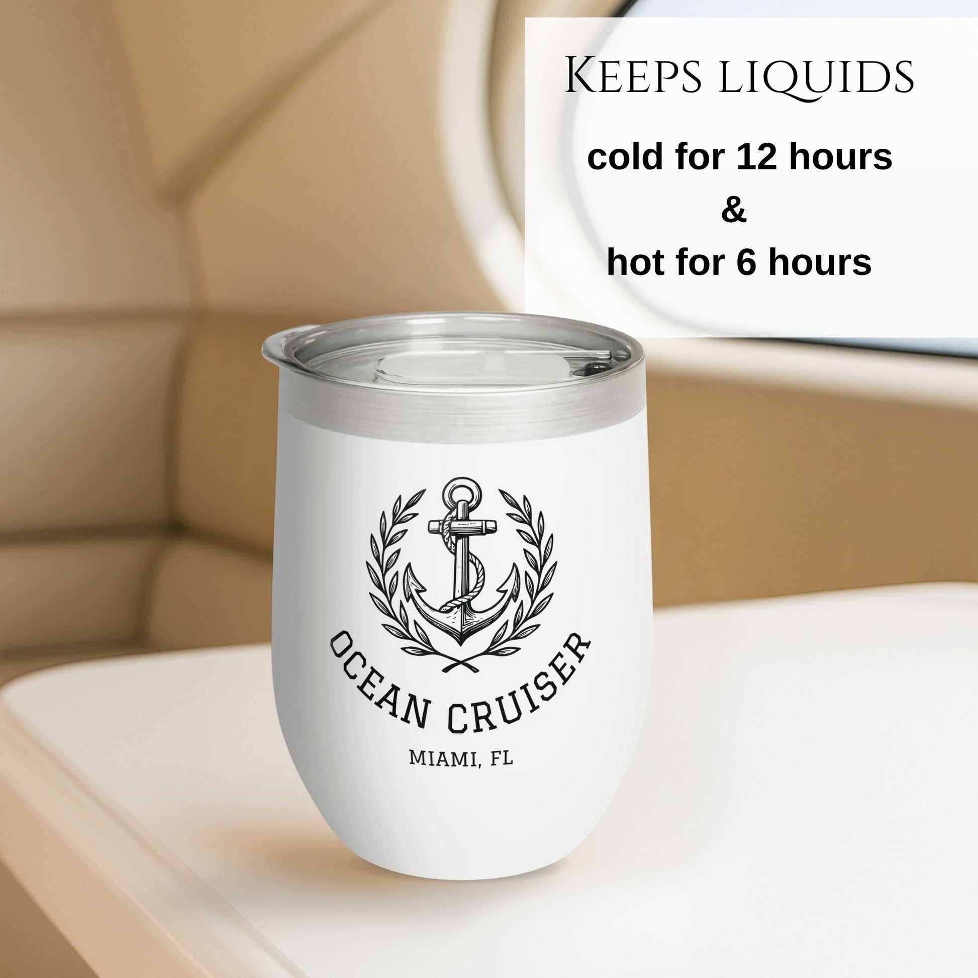 Enjoy your favorite drinks with this personalized anchor wine tumbler. The 12oz size is perfect for wine, coffee, tea, or cocktails. Double-wall vacuum insulation keeps drinks hot up to 6 hours and cold up to 12 hours.