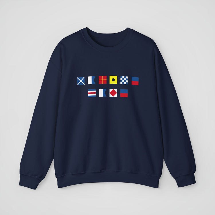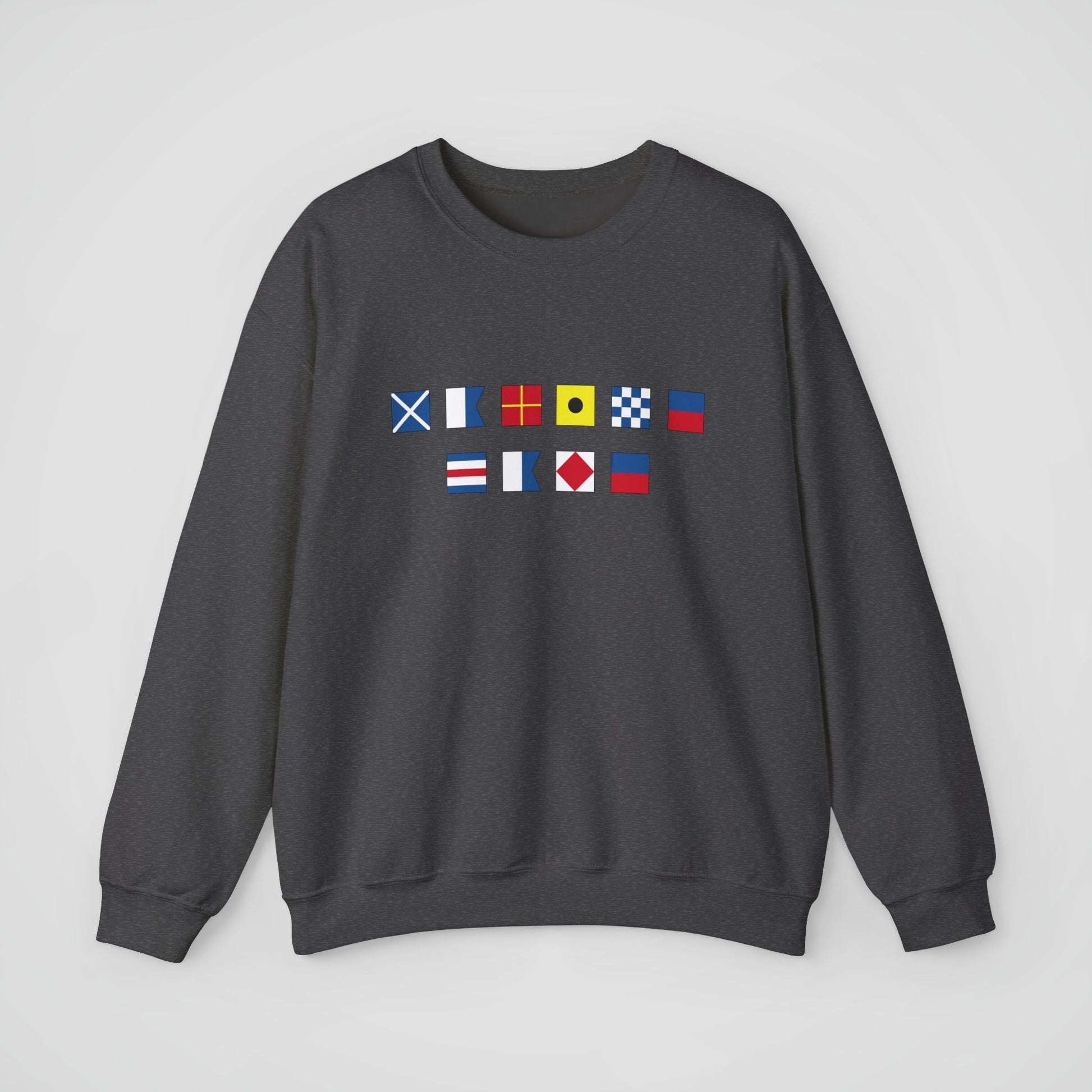 This is a comfortable sweatshirt with nautical flags design. The text or name of your choice will be spelled out in nautical flags. It's the perfect gift for sailors, yacht members, boat owners and all nautical lovers.