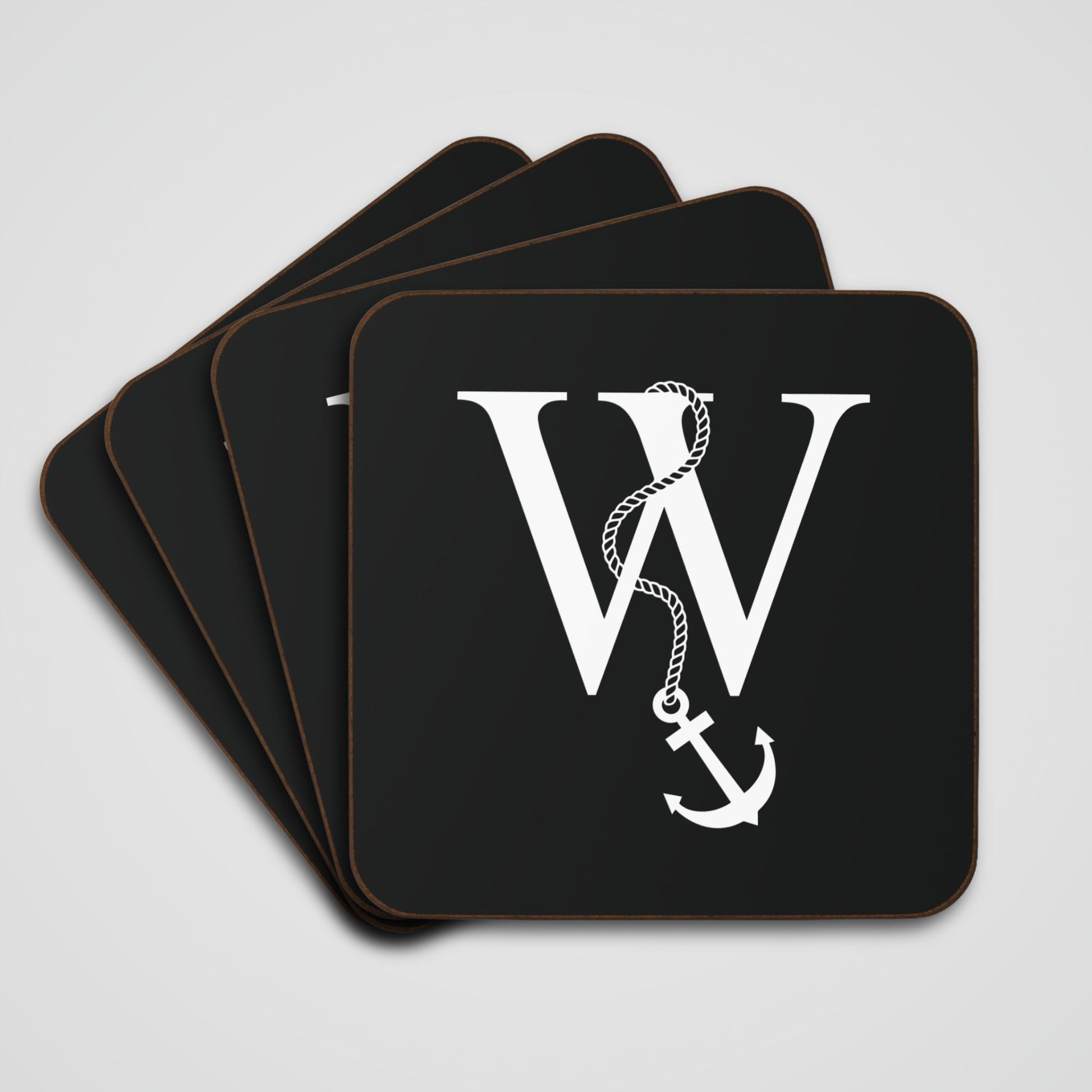 This is a set of 4 high quality nautical coasters personalized with your choice of anchor monograms.