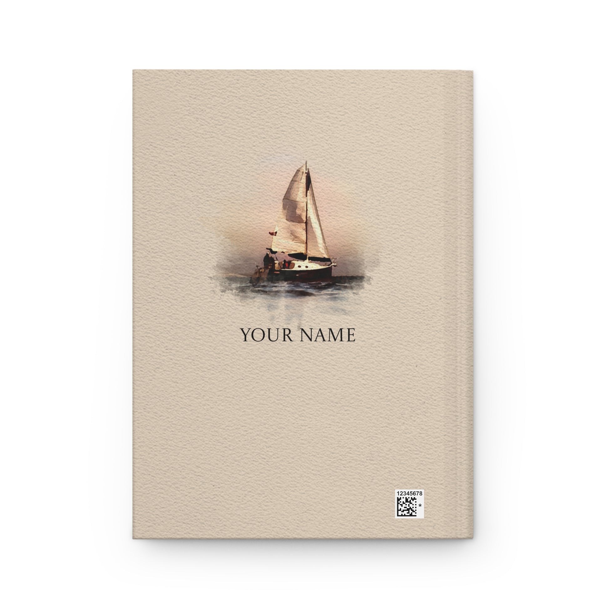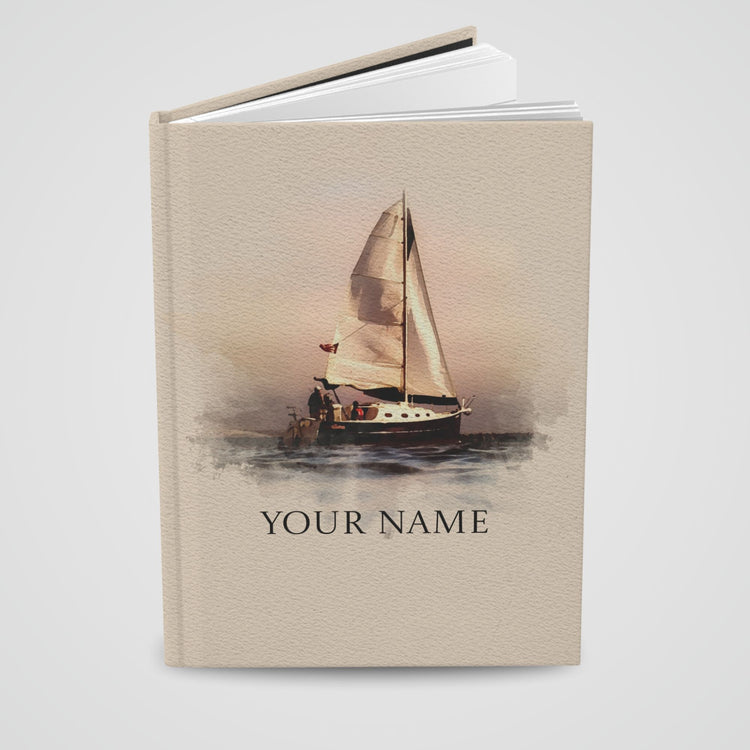 This is a personalized hard cover journal. The design features a watercolor sailboat in the ocean with your custom name or text. Just type in the text that you would like printed when you order. This is perfect for travel journal, sailing journal, boating journal, personalized gift.